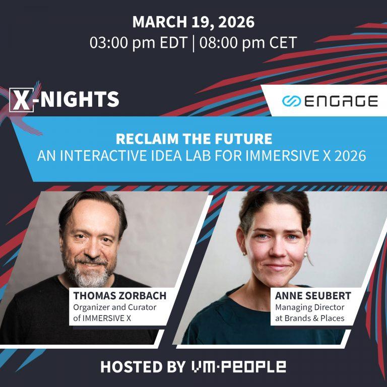 Unter dem Namen IMMERSIVE X veranstalten wir regelmäßig Events in unserer VR-Venue AREA X, die sich mit den Themen Experiential Storytelling, Immersive Tech, Künstliche Intelligenz und dem Metaverse beschäftigen. Wenn Sie Interesse daran haben, an einer unserer nächsten Veranstaltungen teilzunehmen, melden Sie sich bitte hier an.